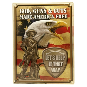 Features: 12" x 17" tin sign with rolled over edges for safety and durability Raised and embossed graphics High quality ink baked to signs to promote long life Mounting holes on each of the 4 corners for versatile mounting option